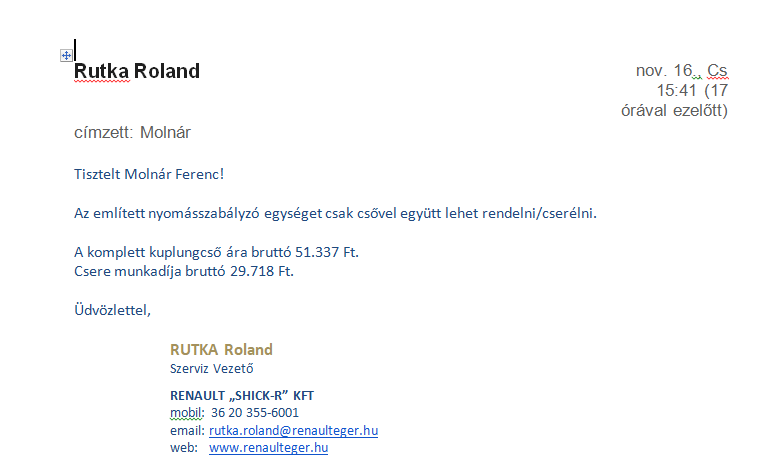 ICL Renault Győr, ajánlati összeg : 87.755.-ft